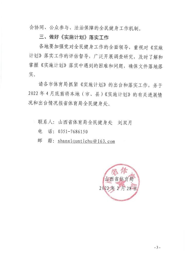 山西省体育局关于贯彻落实《山西省全民健身实施计划(2021—2025年)》的通知