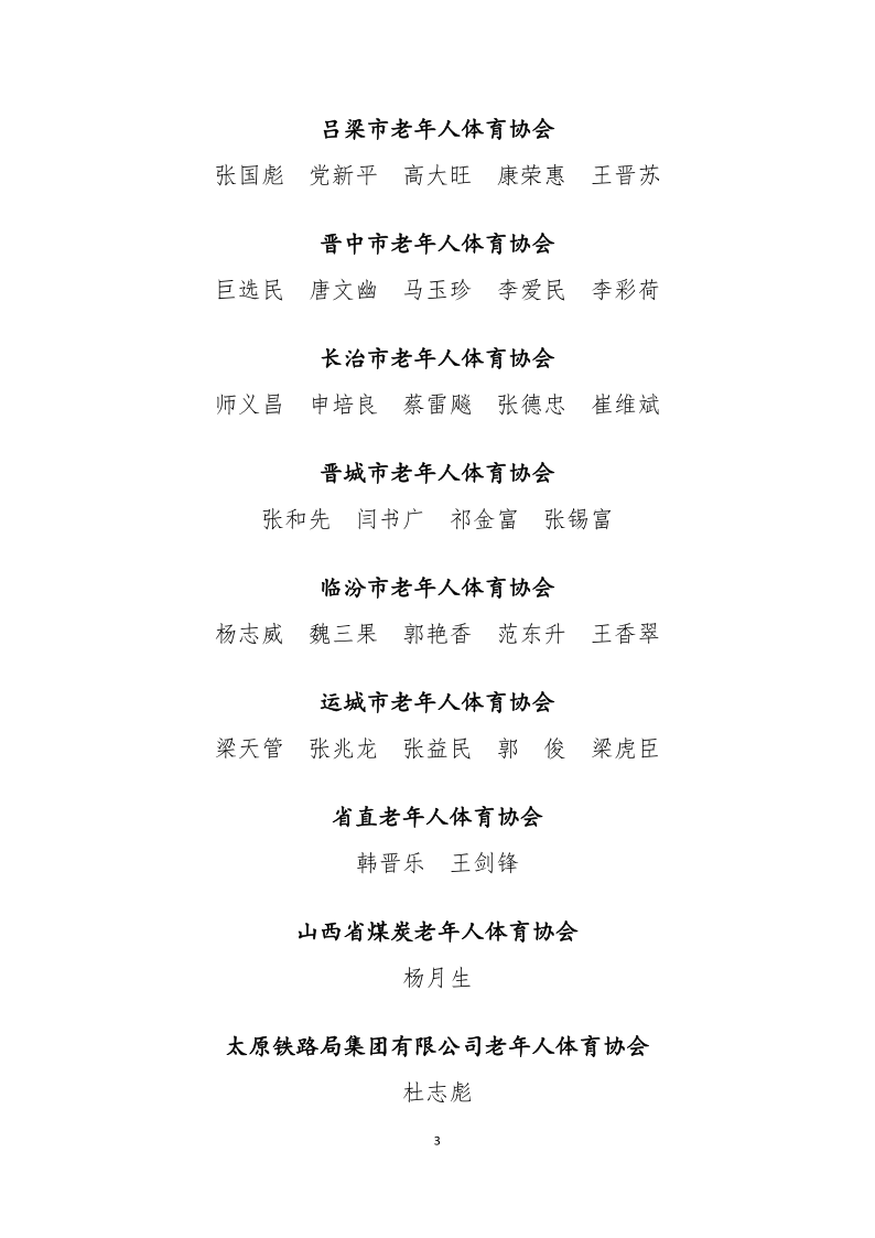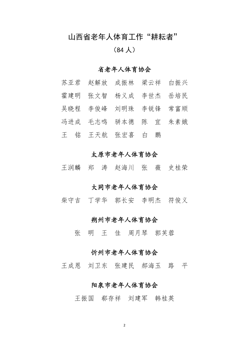关于公布山西省老年人体育工作“开拓者”和“耕耘者”名单的通知