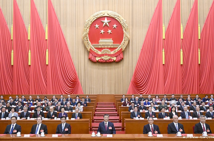 3月11日下午,第十四届全国人民代表大会第三次会议在北京人民大会堂闭幕。党和国家领导人习近平、李强、王沪宁、蔡奇、丁薛祥、李希、韩正等在主席台就座。新华社记者 李学仁 摄